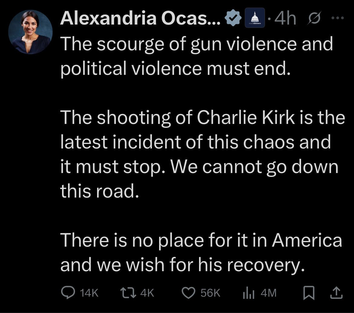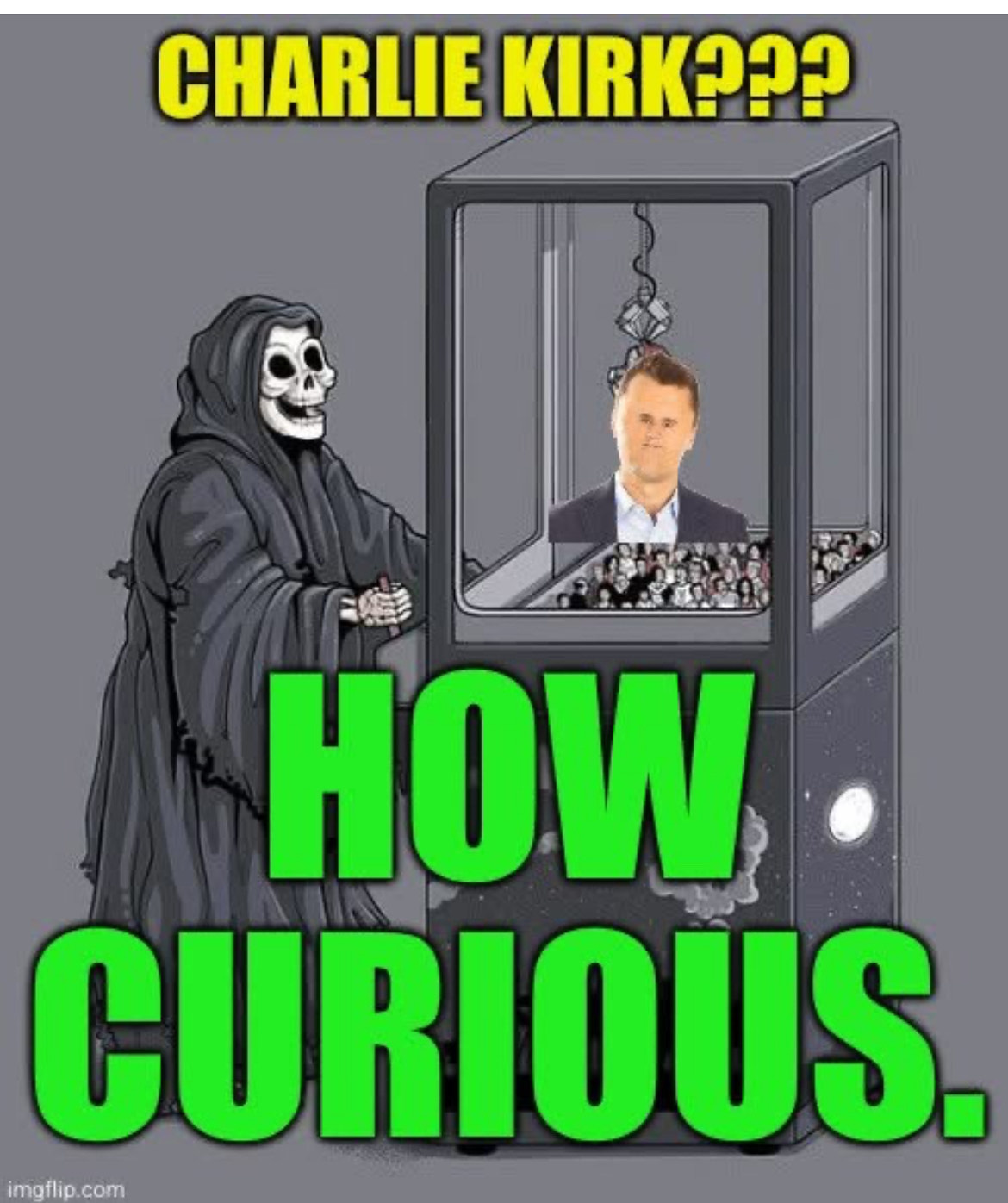I have seen political posts today from people I didn’t know knew how to make political posts. People I didn’t know had political opinions. And they are all the same. All expressing a united sentiment: horror at what happened to Charlie Kirk and revulsion at how you are reacting to it.